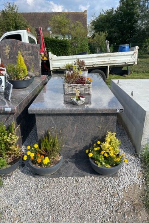 Vous avez acquis une concession funéraire et souhaitez construire un caveau ? Nos caveaux monobloc ou à éléments séparés sont réalisés en béton pour assurer une résistance optimale à l'usure, à l'humidité et aux changements de température. Notre équipe dévouée veille à chaque détail pour créer un lieu de repos sûr et intime, honorant la mémoire de vos êtres chers avec dignité. Notre équipe se charge également des démarches administratives nécessaires pour obtenir les autorisations auprès des mairies, vous offrant ainsi une tranquillité d'esprit. Veuillez noter que nous dépendons des conditions météorologiques pour la mise en oeuvre des travaux.
